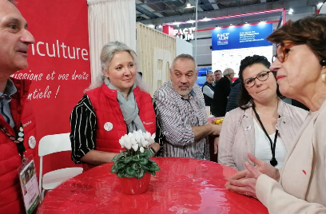 Cette année, FO Agriculture a interpellé la ministre en charge de l’agriculture dans les allées lors de sa visite du SIA.